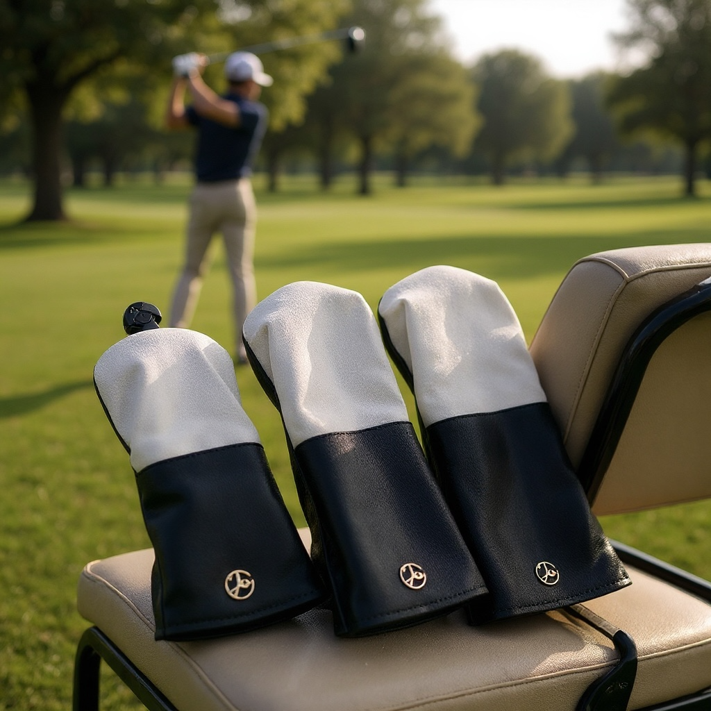 Leather Golf Headcover Premium Set (3-Pack): Protect your Driver, Fairway, and Hybrid with this sleek black-and-white leather set. Durable, soft-lined, and snug-fitting with removable number tags for easy club ID. Stylish protection that elevates your bag.